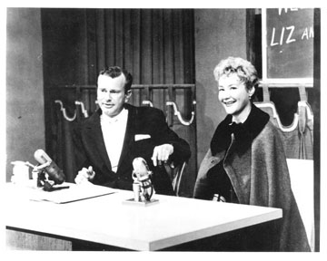 She was, it soon became apparent, indeed real, and the more she talked the more obvious it became that no one could have made up Dody Goodman. She came on the show my second night, and soon millions of TV viewers were asking each other whether this seemingly dumb blonde was actually real. Her hesitant delivery gave the impression that her picture tube was on but her sound wasn't. Dody never seemed to try to be funny; she just stumbled into it. The things she said really weren't particularly funny, but as she talked, fidgeting, fluttering her hands and smiling happily, she achieved a wackily endearing quality. It is not easy to explain her appeal.